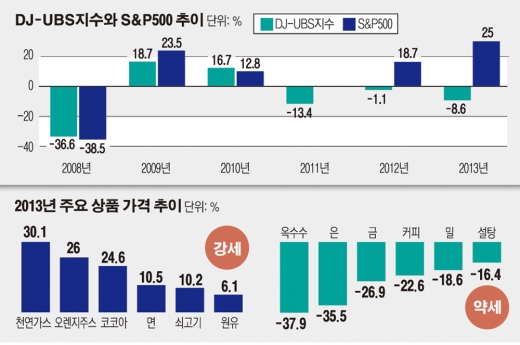 상품시장이 오는 2014년에 본격적으로 반등하면서 주식시장을 능가할 것이라는 전망이 나왔다.