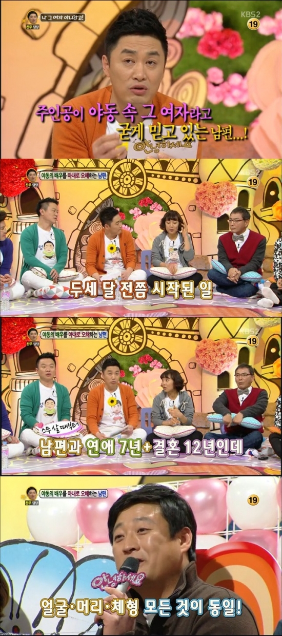 16일 방송된 KBS 2TV 예능프로그램 ‘대국민 토크쇼 안녕하세요(이하 안녕하세요)’에는 ‘남편이 자신을 야동 속 여자’로 오해해 고민이라는 한 주부가 출연했다.