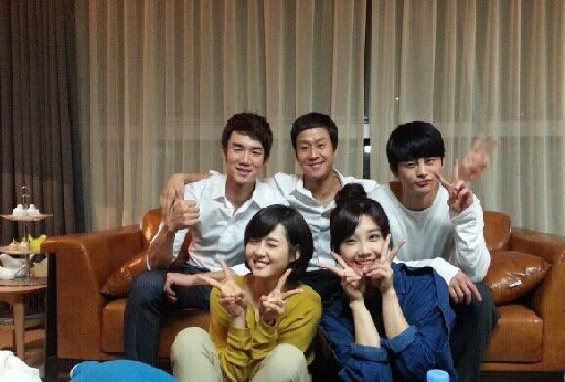 또 유연석, 정우, 서인국은 고아라와 정은지의 뒤에 앉아 환하게 웃는 포즈를 취하고 있다.