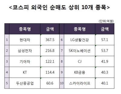 [코스피 외국인 순매도 상위 10개 종목]