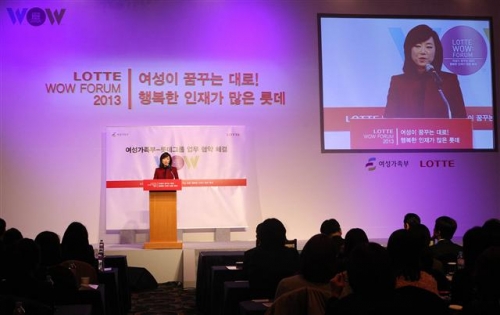 조 장관은 이 자리에서 "롯데그룹의 여성배려 정책이 신규채용, 재직여성, 경력단절여성 등 고용의 전 과정에 확산되면 가시적인 여성고용률 제고로 이어질 것"이라며 "여성인재가 마음껏 역량을 발휘할 수 있는 기업의 인사 및 조직문화가 확립되어 우수한 여성인재들이 더욱 애사심을 갖고 헌신하며 기업발전을 견인할 수 있길 기대한다"고 말했다.