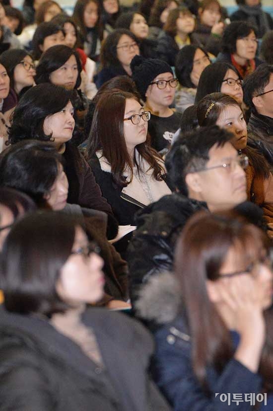 18일 오후 서울 서대문구 이화여자대학교에서 열린 2014학년도 정시모집 입학설명회를 찾은 학부모와 수험생들이 김정선 입학처장의 입학전형 설명에 귀를 기울이고 있다. 최유진 기자 strongman55@