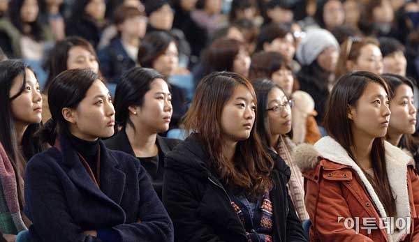 18일 오후 서울 서대문구 이화여자대학교에서 열린 2014학년도 정시모집 입학설명회를 찾은 학부모와 수험생들이 김정선 입학처장의 입학전형 설명에 귀를 기울이고 있다. 최유진 기자 strongman55@