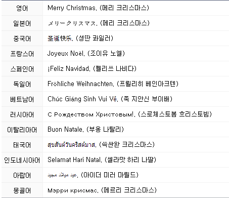 크리스마스를 이틀 앞둔 가운데 한 포털 사이트에 '세계의 크리스마스 인사말'이 올라와 네티즌들 사이에 화제가 되고 있다.