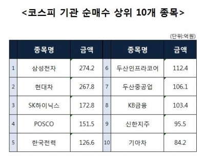 [코스피 기관 순매수 상위 10개 종목]