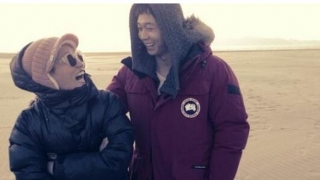 공개된 사진 속에서 사진작가 조선희와 박유천은 바닷가 백사장을 배경으로 함께 서로를 바라보며 환한 웃음을 짓고 있다.