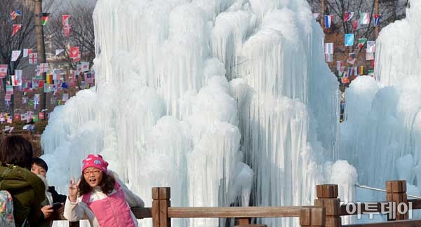 크리스마스인 25일 오전 서울 광진구 어린이대공원을 찾은 시민들이 빙벽 앞에서 사진을 찍으며 추억을 만들고 있다. 최유진 기자 strongman55@