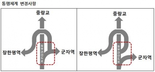 신상철 시 교통운영관은 "군자·장한역 진출차량이 양 방향으로 분산돼 동부간선도로 본선 구간의 상습 정체도 완화될 것"이라고 말했다.