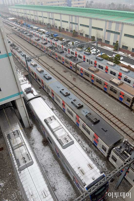 [포토]철도파업 18일째, 차량기지에 멈춘 전철
