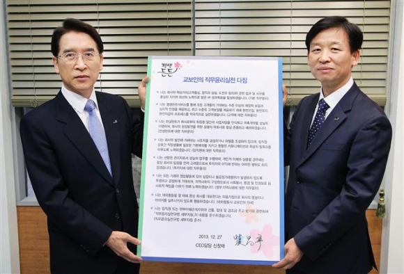 교보생명측은 신 회장이 직무윤리실천 다짐을 매년 해오는 것은 금융회사의 임직원은 높은 직업윤리가 필요하다는 생각에서라고 설명했다.
