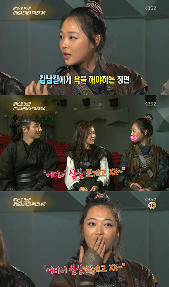 ▲김남길에게 욕설 대사를 전한 설리(사진 = KBS 2TV)