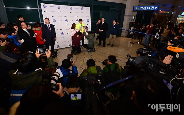 한국 스포츠 역사상 최고 몸값을 기록한 ‘추추 트레인’ 추신수가 30일 오전 영종도 인천국제공항을 통해 귀국해 취재진의 질문에 답하고 있다. 노진환 기자 myfixer@