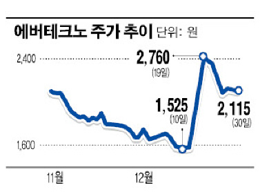 이처럼 최근 에버테크노 주가가 급등한 상황에서 정 대표가 1년 반만에 보유주식을 처분하면서 그 배경에 관심이 쏠렸다.