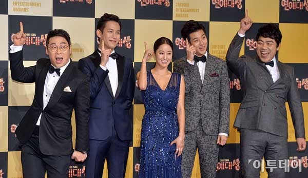 예능프로그램 '심장이 뛴다'팀이 30일 오후 서울 상암동 SBS프리즘타워에서 열린 '2013 SBS연예대상'에 참석해 포토타임을 갖고 있다. 최유진 기자 strongman55@