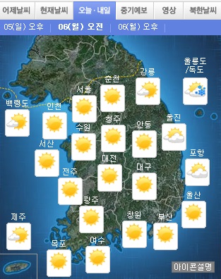 기상청은 내일 고기압의 영향으로 전국이 대체로 맑을 전망이나 경북 동해안과 경상남도에는 오후에 가끔 구름이 낄 것으로 보인다고 5일 밝혔다.