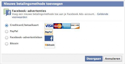 페이스북은 네덜란드 뿐만 아니라 전 세계에서 비트코인 결제를 시험하고 있다. 페이스북의 광고 비용은 최소 5달러다.