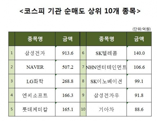 [코스피 기관 순매도 상위 10개 종목]