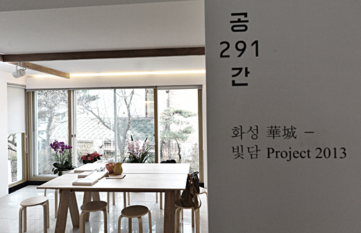 공간291은 2개의 공간으로 이뤄져 있다. 좁은 정원을 지나 가정집에 들어가듯 1층 문을 열고 들어서면 큰 테이블과 정원이 훤히 보이는 큰 창문이 있어, 여느 갤러리와는 다른 느낌이다. 그리고 기존 건물의 벽을 잘 살려 아기자기한 전시장을 이루었고 벽면 또한 다양한 재질을 사용해 전시장을 구석구석 돌아보는 재미를 느낄 수 있다.