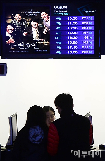 송강호 주연의 영화 ‘변호인’이 900만 관객 고지를 넘었다. 영화진흥위원회 영화관입장권 통합전산망 집계 결과 ‘변호인’은 12일 오전 11시, 누적 관객 수 900만6400명을 기록, 정식 개봉 25일 만에 900만 관객을 돌파했다. 12일 오전 서울 삼성동 코엑스의 한 영화관에서 시민들이 영화표를 예매하고 있다. 노진환 기자 myfixer@