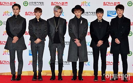 그룹 비스트가 16일 오후 서울 경희대학교 평화의전당에서 열린 ‘제28회 골든디스크시상식’ 레드카펫 행사에 참석해 포토타임을 갖고 있다. 방인권 기자 bink7119@