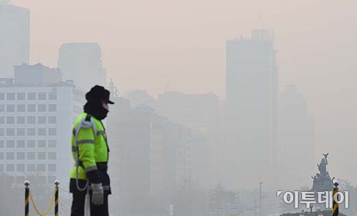 중국발 오염물질 유입으로 서울 미세먼지 농도가 평소 3배 이상에 달하는 등 전국에 미세먼지가 짙게 낀 17일 오전 서울 여의도 일대가 연무에 뿌옇게 보이고 있다. 방인권 기자 bink7119@