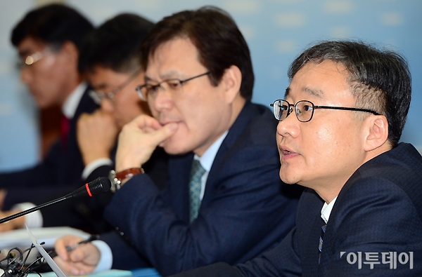 정찬우 금융위원회 부위원장이 17일 오후 서울 중구 금융위원회 대회의실에서 열린 금융회사 고객정보보호 정상화 TF 첫 회의에 참석해 모두발언을 하고 있다. 노진환 기자 myfixer@