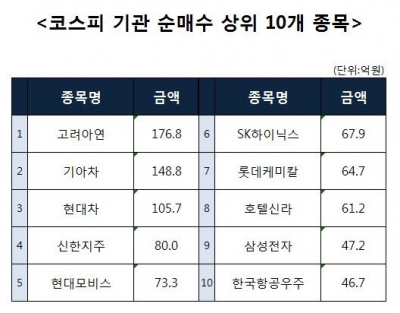[코스피 기관 순매수 상위 10개 종목]