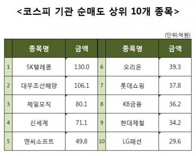 [코스피 기관 순매도 상위 10개 종목]