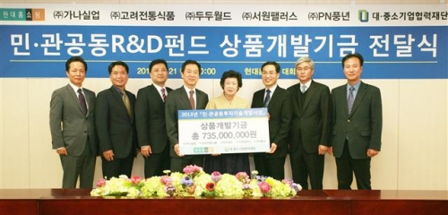 특히 지난해 현대홈쇼핑과 동반성장위원회가 맺은 민관공동투자 R&D를 통해, 올해부터는 지원금 액수를 두 배 이상 늘렸다. 현대홈쇼핑과 대중소기업협력재단이 3억6750만원씩을 각각 투자해 지원하는 방식이다.