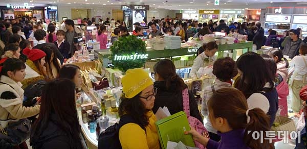 지난 해 서울을 찾은 외국인 관광객 수가 사상 처음으로 천만명을 돌파했다. 서울연구원에 따르면 지난해 한국을 방문한 외국인 관광객은 모두 1천 217만여명으로 여기에 서울방문율 82.5%를 적용하면 1천 4만여명이 서울을 방문한 것으로 추산된다. 23일 오후 서울 중구 소공동 롯데백화점 면세점이 쇼핑을 하는 외국인 관광객들로 붐비고 있다. 최유진 기자 strongman55@