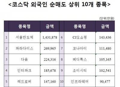 [코스닥 외국인 순매도 상위 10개 종목]