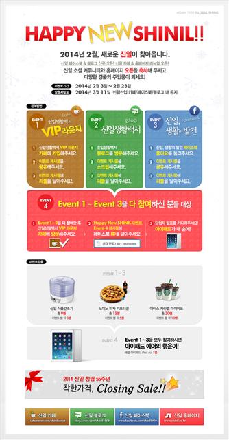 신일산업은 홈페이지(www.shinil.co.kr) 리뉴얼 오픈기념으로 겨울가전 및 주방, 생활가전등 다양한 연령대별 선호도가 높은 제품 11개 품목을 선정해 소비자가보다 14~43% 할인 된 금액으로 판매한다.