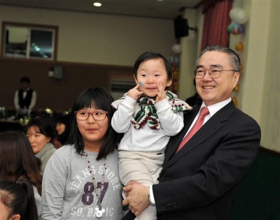 ▲국민대는 유지수 총장(오른쪽)을 비롯, 교직원, 학생 등이 최근 은평 천사원을 찾아 입학식을 개최했다고 밝혔다.(사진=국민대)