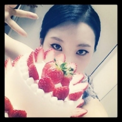 가수 선미가 딸기 케이크 인증샷을 공개했다.