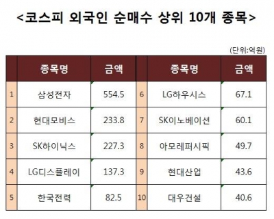 [코스피 외국인 순매수 상위 10개 종목]