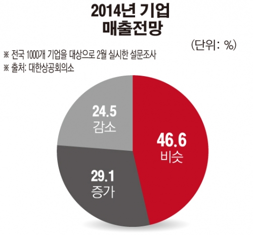 전수봉 대한상의 조사본부장 “미국 테이퍼링 시행, 중국 경제둔화 우려, 신흥국 경제불안, 내수부진 지속 등 대내외 경제 불안요소들로 인해 올해도 기업들의 경영여건은 쉽지 않을 전망”이라고 말했다.