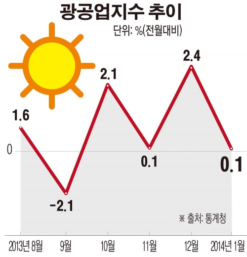 통계청, 2014년 1월 산업활동동향…1월 광공업생산 0.1% 상승