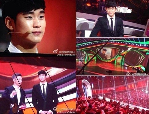사진 속 김수현은 다소 긴장한 듯 하지만 자연스러운 포즈로 시선을 객석과 맞추고 있다. 김수현은 전세기까지 동원, 중화권 톱스타 장백지와 함께 프로그램 특별 심사위원 자격으로 참석한 것으로 전해졌다.