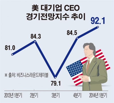 미국 기업 최고경영자(CEO)들의 경기에 대한 낙관적 전망이 2년 만에 최고 수준인 것으로 나타났다.