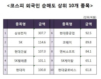[코스피 외국인 순매도 상위 10개 종목]