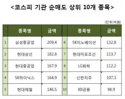 [코스피 기관 순매도 상위 10개 종목]