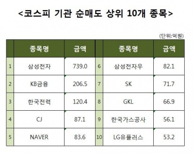 [코스피 기관 순매도 상위 10개 종목]