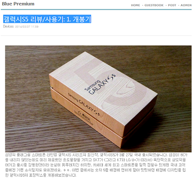 이날 정오께 한 블로그 사용자는 '갤럭시S5 리뷰/사용기: 1. 개봉기'라는 제하의 글과 여러 장의 사진을 게재했다.