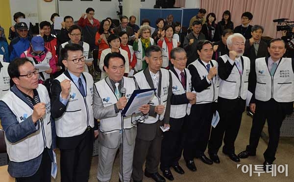 공명선거실천시민운동협의회는 9일 오전 서울 종로구 동숭동 흥사단 대강당에서 공명선거 발대식 및 감시·고발센터 개소식을 가졌다. 이날 참석자들이 공명선거를 위한 구호를 제창하고 있다. 최유진 기자 strongman55@