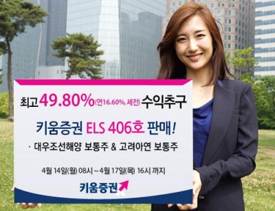 이번 공모하는 ‘키움증권 ELS 406호’는 ‘대우조선해양, 고려아연’을 기초자산으로 하는 3년 만기 원금비보장형 상품으로 최고 49.8%(연 수익률 16.6%)의 수익을 지급한다.