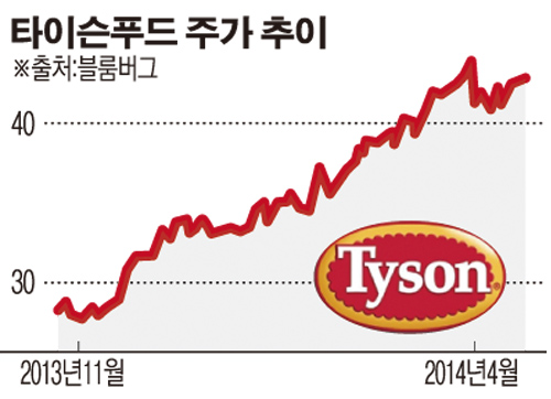 CLSA는 최근 보고서를 통해 “현재 최고 수준을 나타내고 있는 육류 가격이 하락할 수 있다”면서 “타이슨푸즈와 필그림프라이드의 주가는 이미 올들어 25% 상승한 상태”라고 설명했다.