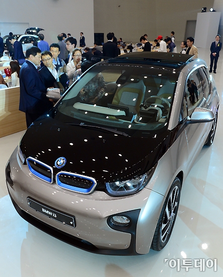 BMW 코리아가 24일 오전 서울 동대문 디자인 플라자에서 BMW 최초의 순수 프리미엄 전기자동차 i3를 공개했다. 후륜 구동인 i3는 타입1 방식의 완속 충전으로 100% 충전하는데 3시간이 소요되며, 최고출력 170마력, 최대토크 25.5kg.m, 정지상태에서 100km/h까지 도달 시간은 7.2초다. BMW i3의 가격은 룩스(LUX)가 5800만원, 솔(SOL)이 6400만원, i비스(VIS)는 6900만원(VAT포함)이다. 노진환 기자 myfixer@