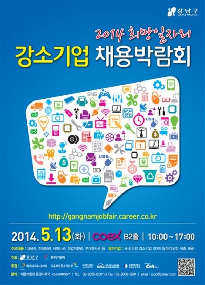 서울 강남구가 13일 오전 10시부터 오후 5시까지 삼성동 코엑스 1층 B2홀에서 ‘2014 희망일자리 강소기업 채용박람회’를 연다.