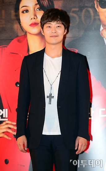 JTBC 월화특별기획 ‘유나의 거리’ 제작발표회가 14일 오후 서울 중구 메가박스 동대문에서 진행됐다. 배우 이희준이 무대에 올라 취재진을 향해 포즈를 취하고 있다.