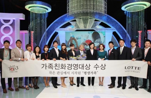 올해 3회째인 가족친화경영대상은 일과 가정을 양립할 수 있는 가족친화 우수사례를 전파하려는 취지로, 2008년부터 2013년까지 가족친화 인증을 받은 기업과 기관을 대상으로 심사를 진행한다. 롯데호텔은 임직원 자녀의 성장단계에 맞춘 ‘자녀 생애주기 지원 제도’가 높은 평가를 받았다.